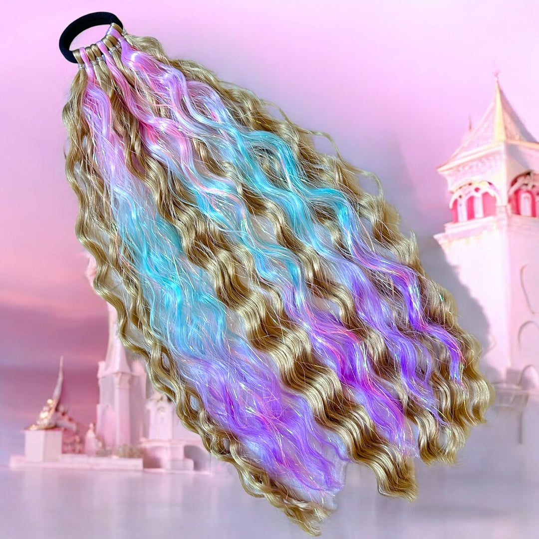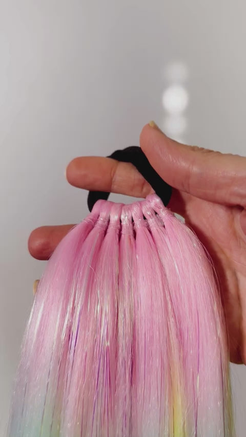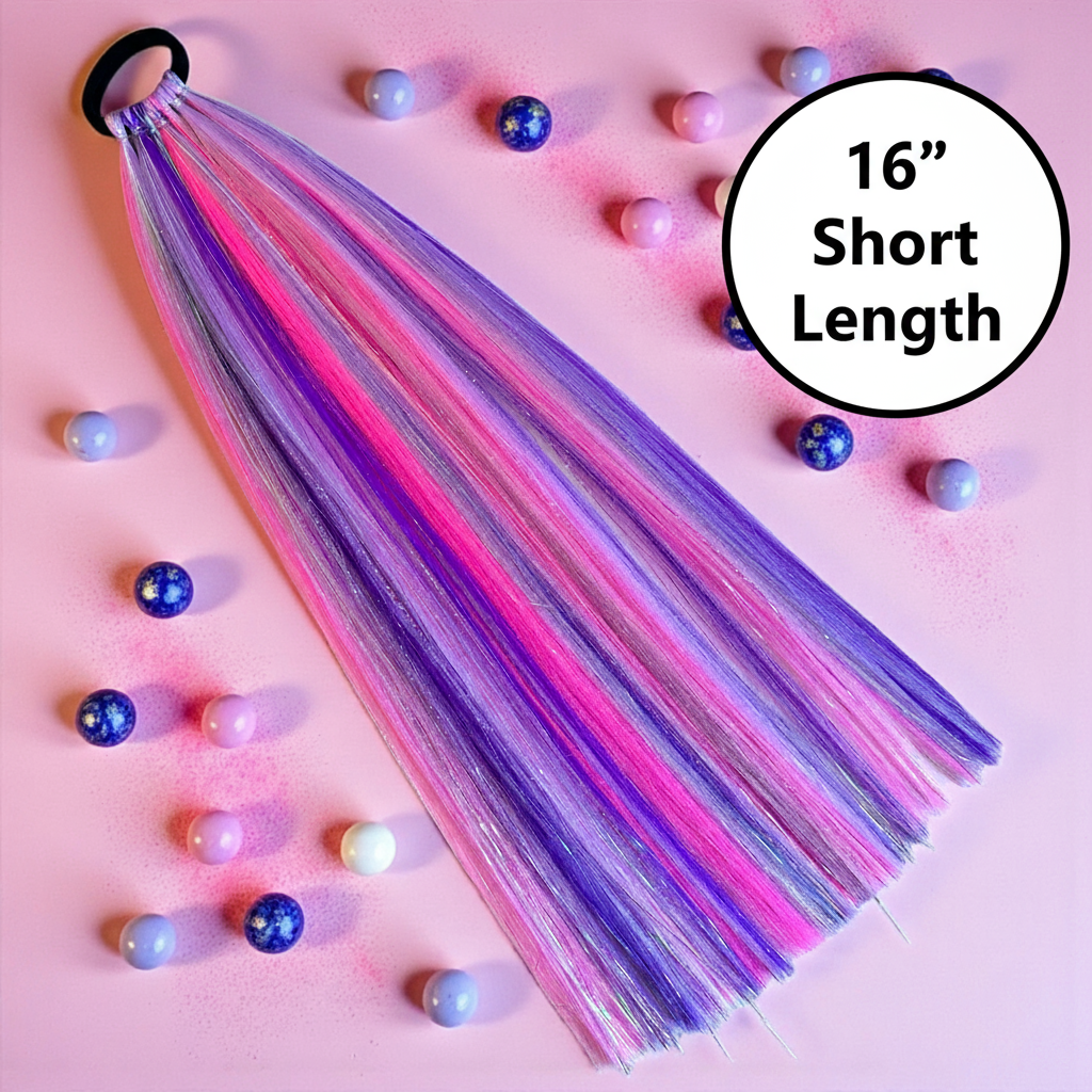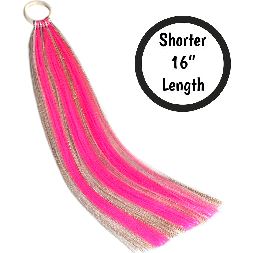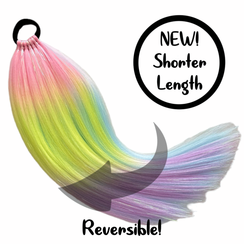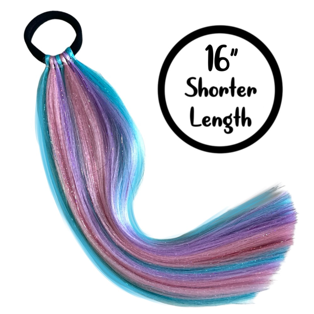 Perfect length, perfect sparkle! Our 16" Shimmer Tails offer the ideal shorter length for those who want the signature Magic Manes shimmer without the extra-long style. Great for everyday wear, kids, and anyone who prefers a more manageable length.