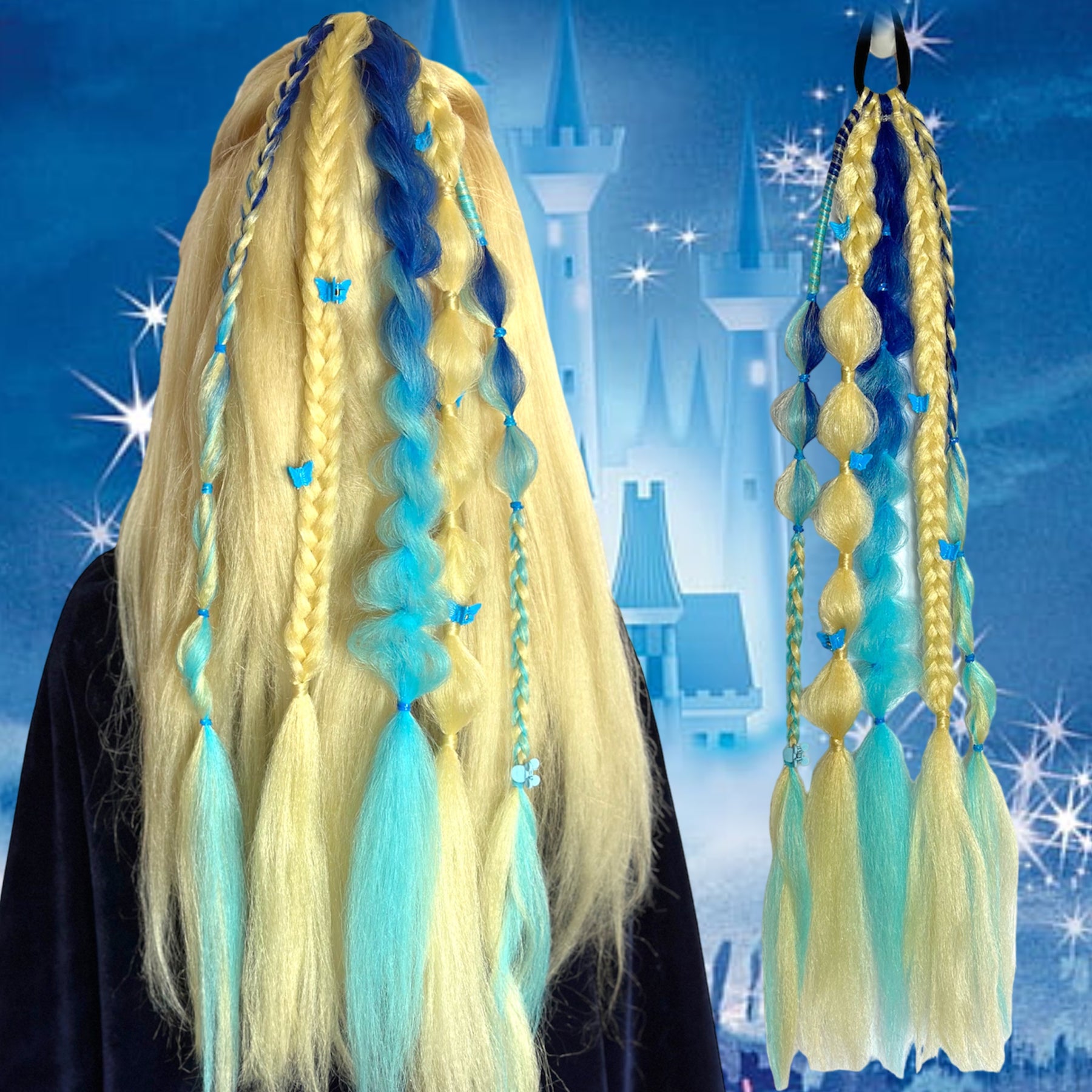We use blonde, royal blue and aqua blue to create a five braid hair piece with a combination of different braiding techniques.