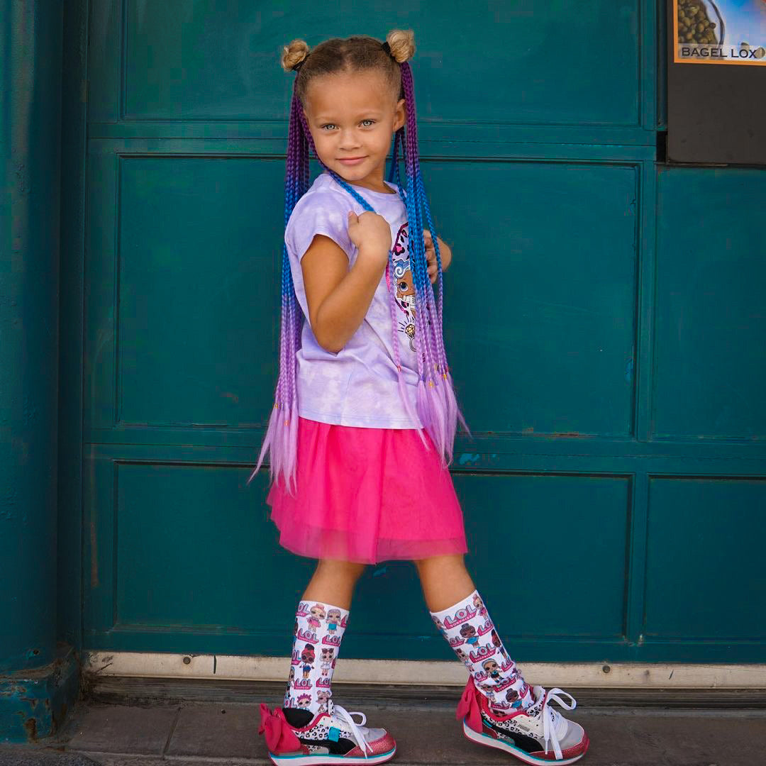 Magic Tails are candy-colored, unicorn inspired flip-in ponytail hair extensions. Simply elastic your Magic Tail over your own ponytail for a purple to aqua to light lilac ombre look that will turn heads every where you trot!