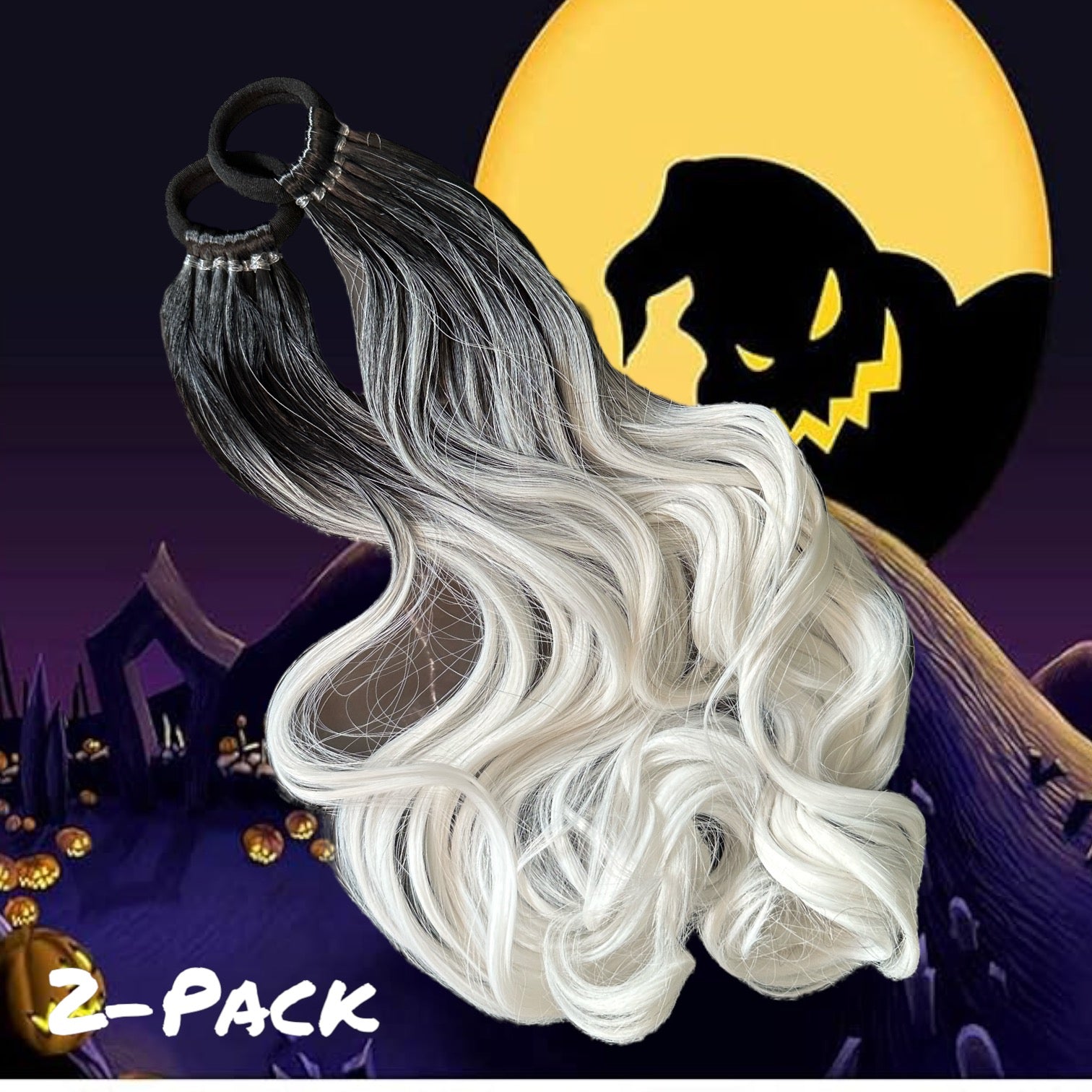 Our Magic Ponies are 20” long and come in a set of two. 6, silky wefts of synthetic hair comes on a sturdy ponytail elastic. Easily add to any length or hair texture in seconds. These lightweight extensions are comfy to wear all day - even for the smallest unicorns!