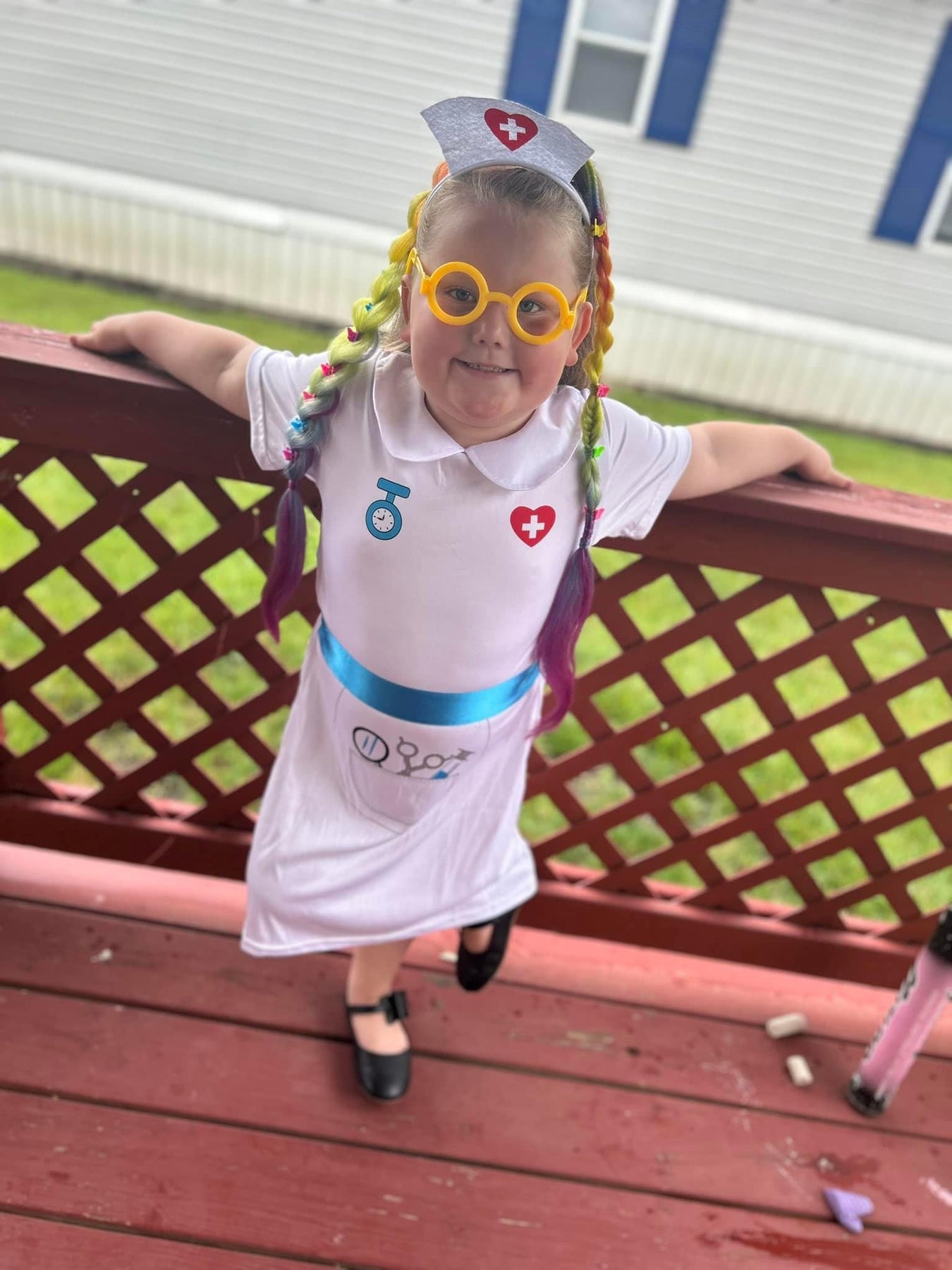 We use beautiful ombré rainbow hair to create a three braid hair piece with a combination of different braiding techniques. We adorn these with cute and colorful butterfly clips that can be removed or adjusted.